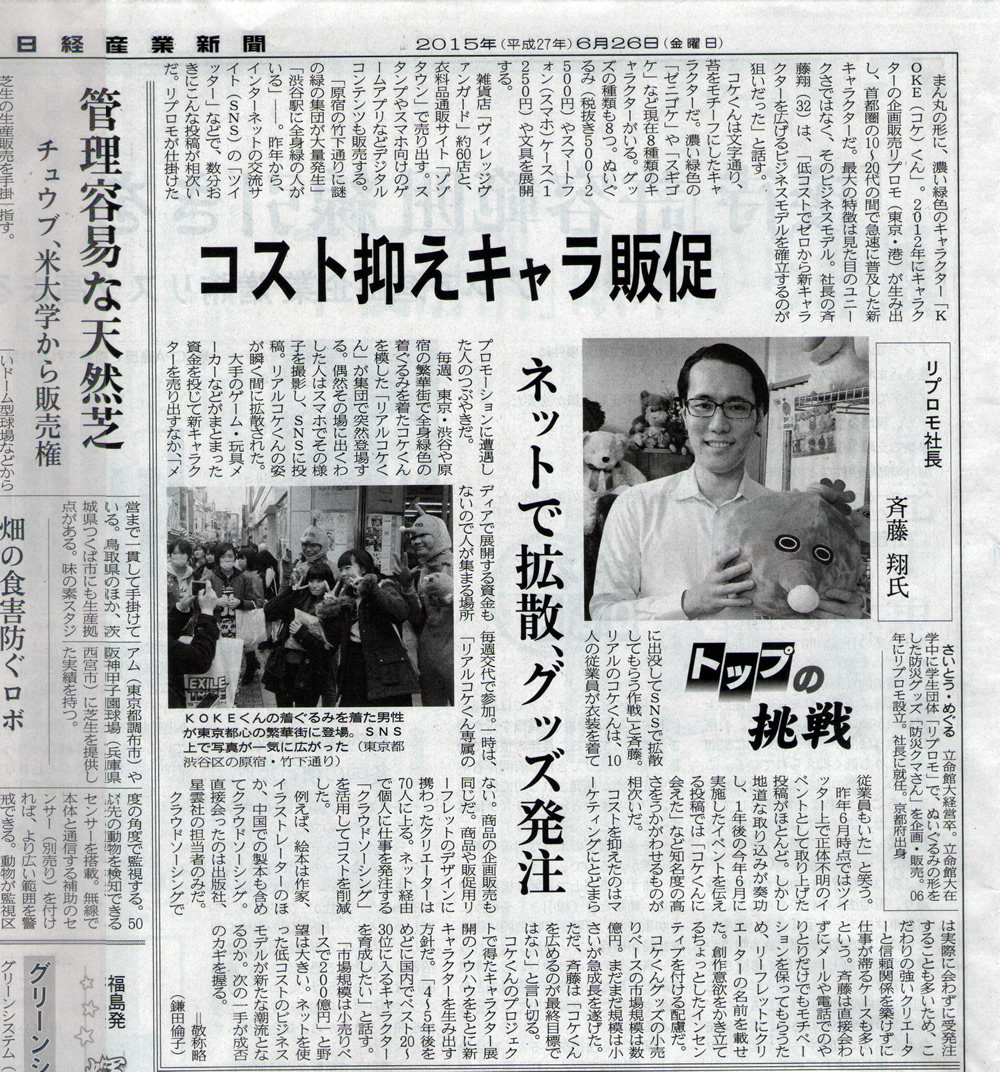 TBSマツコの知らない世界・TBS系列「サンデージャポン」・日本テレビ「ニノさん」・テレビ朝日「お願い!ランキング」・NHK Let's天才てれびくん・日テレ PON・日テレ ヒルナンデス・フジテレビ めざまし土曜日メガ・TBS Nスタ・フジテレビ 笑っていいとも ベッキーHAPPY雑貨店 ・NHK ゆうどきネットワーク ・テレビ朝日 やじうまテレビ ・ミヤギテレビ OH!バンデス ・TBS Nスタ ・TOKYO MX *TOKYOBOY・TBSはなまるマーケット・日テレDON!・ NHKワンセグランチボックス・NHKおはよう日本「街角情報室」・四国放送テレビ「ゴジカル!」・RKB毎日放送(福岡)「今日感テレビ」・日本テレビ スッキリ!!・テレビ朝日「クイズ雑学王」クイズとして出題・関西テレビ「アップ&UP」・毎日放送 知っとこ・テレビ金沢 SMILE! ・日本テレビ Oha4!ニュースライブ・日本テレビ あさ天 サタデー・NHK おはよう日本 街角情報室・毎日放送 ちゅーねん・フジテレビ めざにゅう・ダイレクトテレショップ・朝日放送 評判中村屋・KBS京都放送 京BIZ・福島中央テレビ ゴジてれ・びわこ放送 シーズハンター・読売テレビ ウェークアップぷらす・テレビ新潟 新聞 日経産業新聞 23面「トップの挑戦」・共同通信社・産経新聞夕刊(近畿圏)「あ!ええ品見っけ」・朝日新聞 防災学検定・共同通信社を通じ各種地方新聞・東日新聞・毎日新聞 OSAKA防犯・防災新聞・読売新聞懸賞紙よみうりGet's・夕刊フジ・日経MJ・京都新聞×3回・日経新聞関東版コラム・朝日新聞×2回・読売新聞・毎日新聞 ラジオ TOKYO FM 全国ネット「クロノス」ゲスト出演・JFNラジオ「Simple Style オヒルノオト」・FM群馬主導県内5局・FM NACK5・KBS京都ラジオ・HBCラジオ(北海道)朝刊さくらい・FM802(大阪)・KBS京都ラジオ 災害シュミレーションラジオ ~その時あなたは~・J-WEVE×3回・FMヨコハマ・京都三条ラジオカフェ・札幌・笑福亭晃瓶のほっかほかラジオ 雑誌 エンタミクス2月号「次に来るキャラ特集」・ピチレモン2月号「2015年にこのキャラクターが来る!」・キラピチ11月号(表紙に掲載)・KERA11月号・HR 11/12月号・S Cawaii!11月号・ キラピチ10月号(表紙&ふろくシール)・nicola「NEXT新人気キャラ総選挙」・KERA編集部・Cancam編集部・Spring 9月号「MODEL'S LIFE★SNAP」・Ranzuki5月号・non-no5月号「はやりものNEWSチェックマ」・Seventeen 2月号「2014年の流行予想ダービー」・Nicola 5月号・Cutie5月号・anan・ラーラぱどプラス・週刊女性「後悔しないための最新防災グッズ50」・赤ちゃんBonjour ach・サンデー毎日・日経消費ウォッチャー・JUNON・ギフト専門誌SELECT・GRAN、NICOS magazine4月号・お絵かきパズルランド・愛知県清須市 広報誌 てとて・女性自身・09年度 立命館大学の大学案内・ 主婦の友 プレモ・主婦の友 ベビモ・ 小学館DIME(ダイム)・日経キッズ+・ 週刊少年チャンピオン・Begin(ビギン)・お絵かきパズルランド・テディベアヴォイス・ 立命館OBOG通信・C WORKS(フリーペーパー)・CREW(フリーペーパー) その他多数